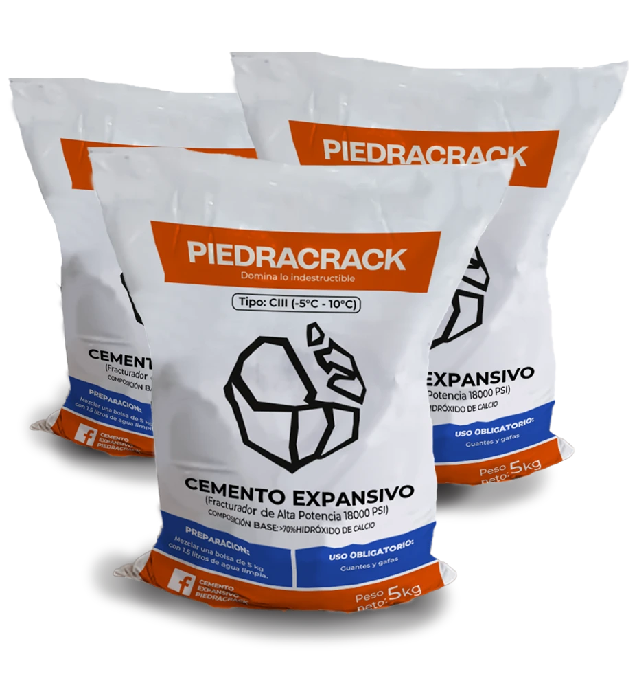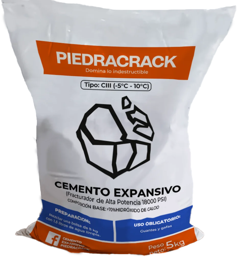 Cemento expansivo Piedracrack es un agente de demolición no explosivo que permite romper roca, concreto armado y estructuras sólidas sin generar vibraciones, ruido ni riesgos.